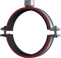 Galvanised pipe clamp with sound insulation for heavy-duty applications