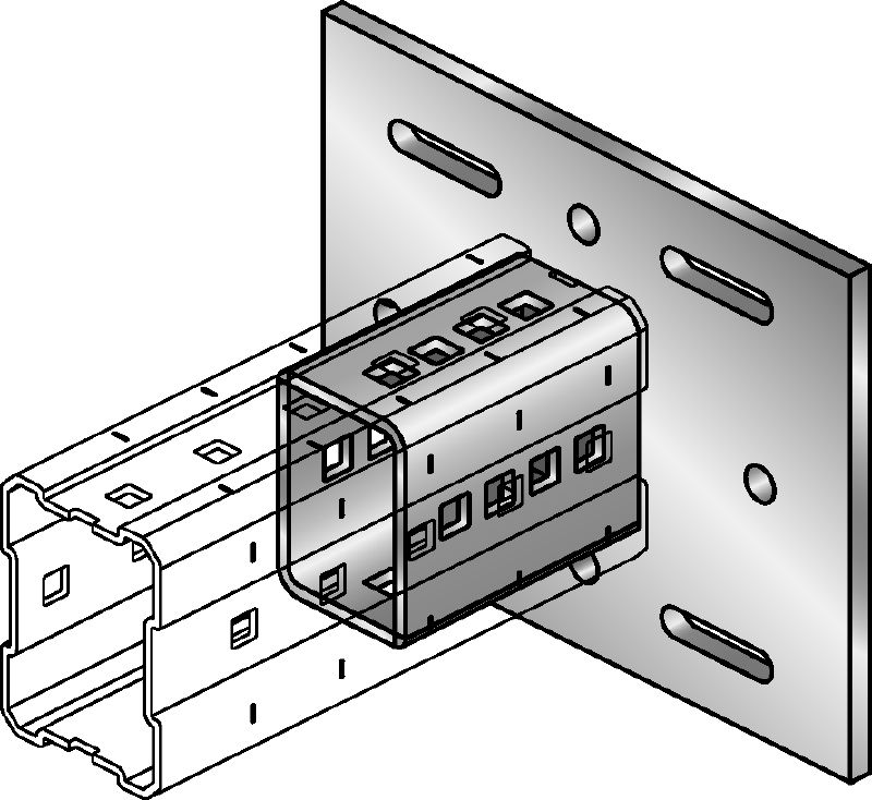 - Part of a modular four-part system for supporting cable trays, pipes and miscellaneous secondary steel